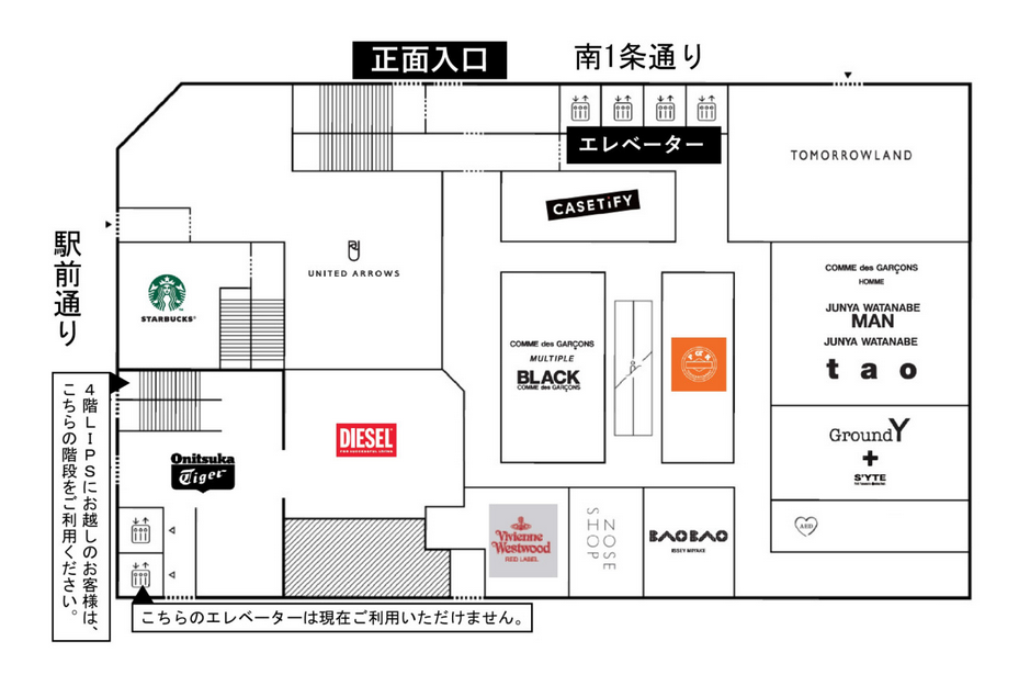 1月28日に発生した札幌パルコ館内での火災の影響により、現在パルコ南側エレベーターがご利用いただけない状況となっております。